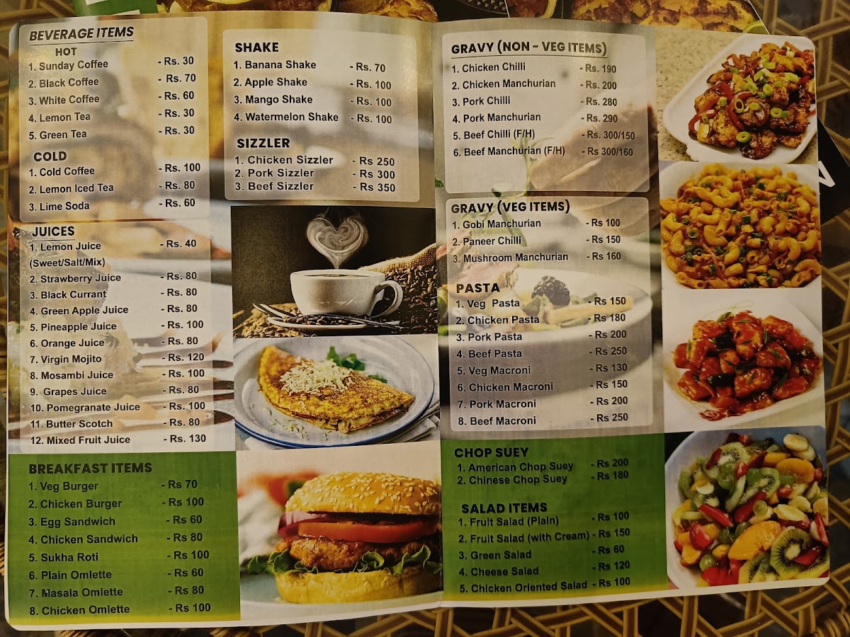 - Breakfast Items: Start your morning right with comforting choices like Chicken and Veg Burgers, or hearty Omelettes, all affordably priced.